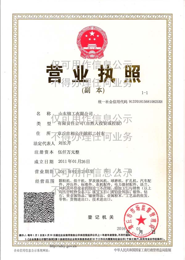錦工羅茨風機營業執照